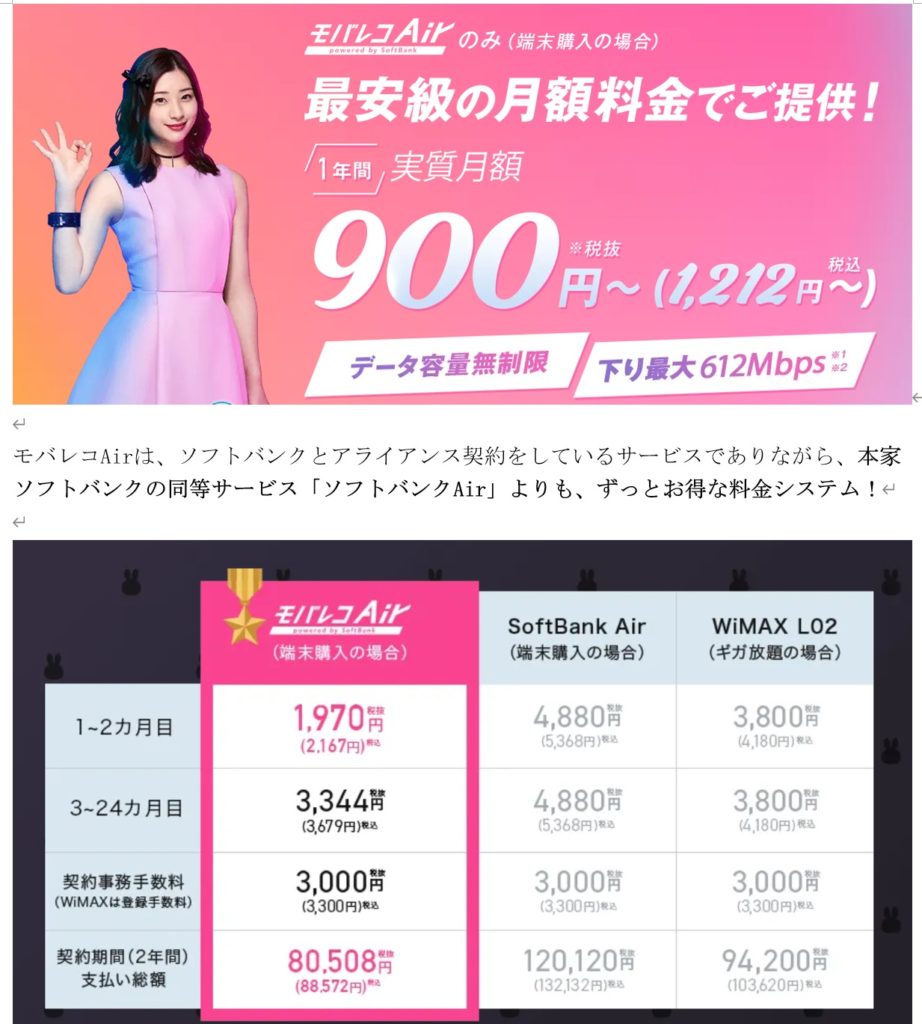 モバレコAirの魅力は、そのお手ごろな月額料金にもありました。